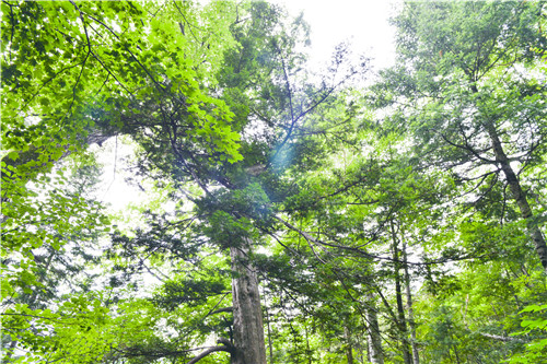 炎炎夏日,走进和龙林业有限公司辖区的甑峰岭自然保护区,迎面而来的却是一种独有的清凉和舒爽,酷暑难耐的感觉瞬间无影无踪。正值八月,也是东北红豆杉生长最为繁盛的季节,这个季节的红豆杉不仅叶片葱郁,而且部分母树已经开始挂果,待到九月末十月初,果实成熟满树红豆,你才会感受到红豆杉这个名字并非“浪得虚名”。