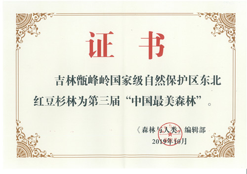 坐落在长白山森工集团和龙林业有限公司辖区内的吉林甑峰岭国家级自然保护区,其核心区是天然东北红豆杉种群的繁衍栖息地。据调查,保护区内天然东北红豆杉植株有28余万株,其中有16.89万株集中分布在3130 公顷的土地范围内,密度接近每公顷54株,是目前东北三省野生东北红豆杉种群分布范围最大、密度最高的地区,具有重要的保护和研究价值。2019年该种群栖息地荣登第三届“中国最美森林”榜单,成为吉林省唯一入选“中国最美”的森林。
